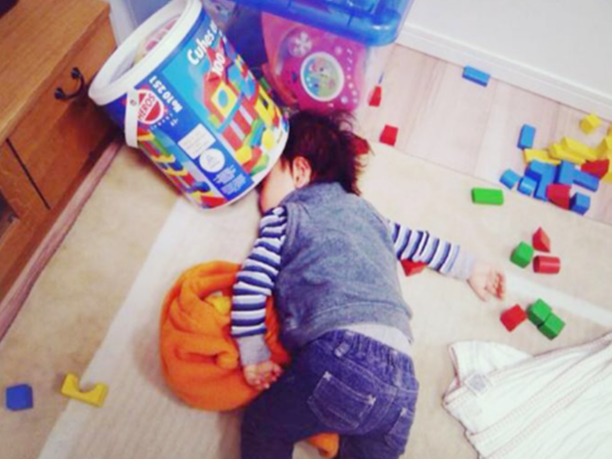 孩子的头在和玩具互动吗?这表明即使我喜欢玩玩具,我也无法抗拒入睡的诱惑,而且我仍然会睡得很香。看到这张照片,我真的很想笑,感到沮丧。