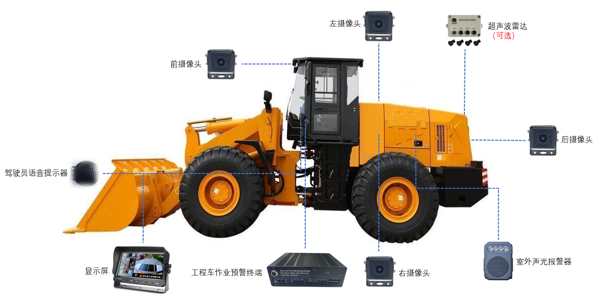 工程车辆盲区视觉360防碰撞 预警系统是专为大型工程车辆(如挖掘机、装载机、起重机、渣土车等)设计的安全辅助系统,通过多维度视觉感知与智能算法,实时监测车辆周围盲区的人员、障碍物或潜在危险,并以声光报警、图像显示等方式提醒驾驶员,从而减少碰撞事故。以下从系统构成、关键技术、应用场景及优势等方面展开说明: